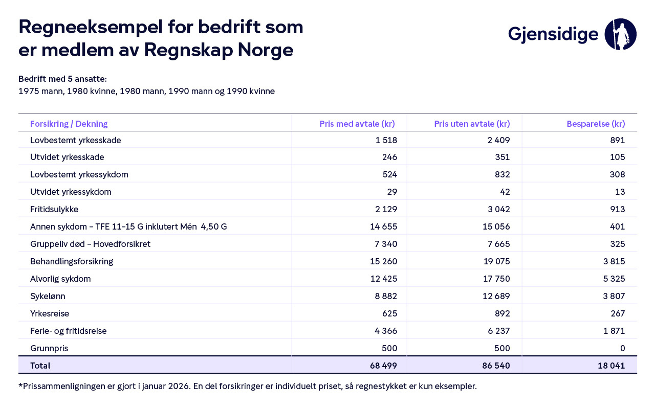 Vi har forhandlet frem en svært gunstig forsikringsavtale hos Gjensidige for medlemmene våre. Som bedriftsmedlem får du gode rabatter på både personal- og skadeforsikringer, i tillegg til fordeler på privatforsikringer.