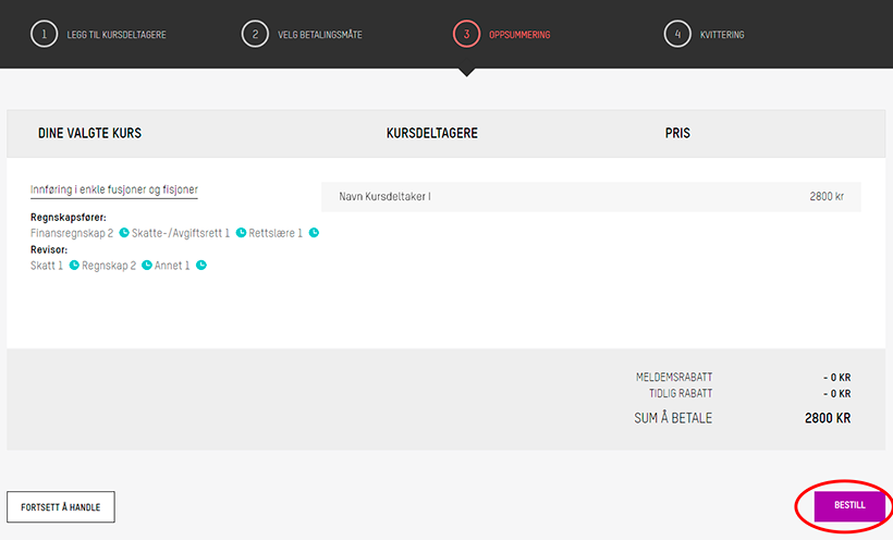 Gjennomfør kurskjøpet ved å klikke BESTILL.